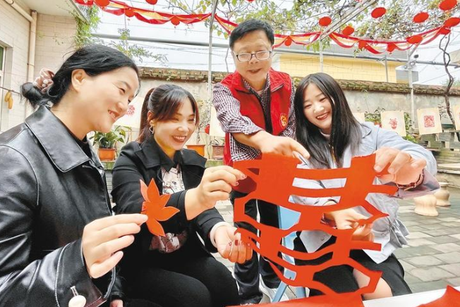 “这家是在办喜事吗?”见记者疑惑,张生解释说,这是村里的美丽庭院学堂,今天正好是剪纸学堂,街道妇联的同志来给大家教剪纸。平时还有画画、反诈宣传、家风教育等学堂,不定时地开设,“美丽庭院学堂就设在村民王喜平家里,他是村里出了名的利索人,爱干净,积分总是排在村里头几名”。