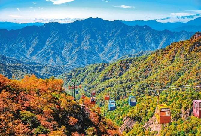 红色的枫树、柿子树;黄色的白杨、银杏;苍翠的油松、圆柏,加上各种野花绿树,让人目不暇接。秋风吹过,树林随风摇曳,野生动物在林间穿梭,更增添了一份活力与生机。村庄已然和秦岭融为一体,吸引着久居都市的人们前来感受秋日山林中独特的美。穿过茂密的林海,登高远望又是另一幅画面,薄雾、流云轻飘在山峰间,山色在云雾的衬托下柔美万分,斑斓秋色尽收眼底。