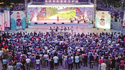 7月9日,2024长安区群众秦腔擂台赛周赛(第一场)在西安市长安区长安公园开赛。2024长安区群众秦腔擂台赛在全区共选拔出567名优秀选手参加区级比赛。大赛7月3日开始,将在国庆期间举办总决赛,共计举办51场比赛。 记者 许奥博摄