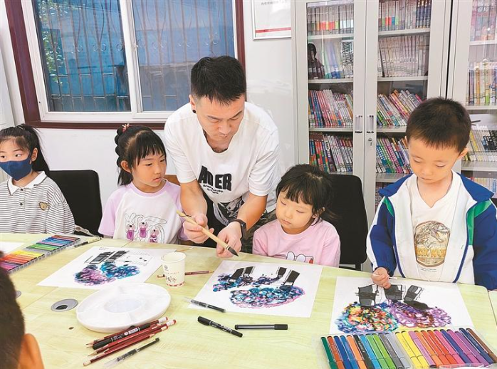 此外,每年暑假,他还免费为社区公益绘画班代课,用手中的画笔为孩子们勾勒五彩斑斓的艺术世界。