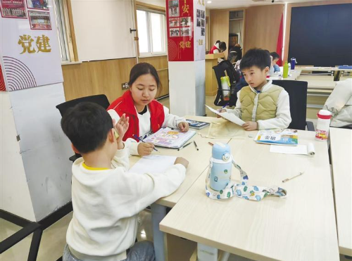 西安市小火柴志愿者服务中心的志愿者在辅导孩子(资料照片)。