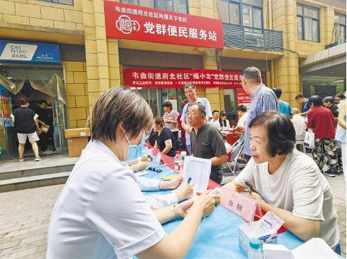理发剪“咔咔”作响,测血糖、血压的老年人络绎不绝……6月27日,在西安市长安区,韦曲街道多家单位和机构爱心人士走进府北社区,在风憬天下小区东区的党群便民服务站开展便民活动,吸引不少群众参加。