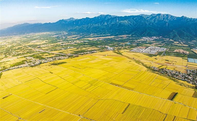 5月28日,西安市长安区神禾塬,一望无际的麦田与连绵起伏的秦岭构成一幅风吹麦浪、物阜民丰的景象。当前,“三夏”工作正在全省逐步展开,各地各部门落实落细各项措施,确保不误农时、颗粒归仓。