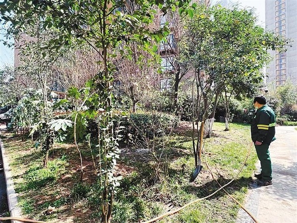 几天前,因为风憬天下小区东区9号楼下有人在公共绿地堆放废品,小区居民意见还颇深。3月12日,记者再去现场,发现这里已经焕发新颜。在植树节前夕,长安区韦曲街道府北社区对这里进行了绿化翻修。昔日的“垃圾场”摇身一变,成了名副其实的“后花园”。