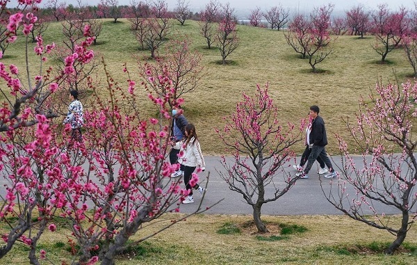 三月十九日,西安市长安区唐村梅园四千余株红梅迎春绽放。 本报记者 田若楠摄