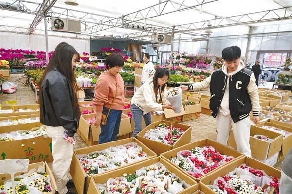 3月4日一大早,位于长安区黄良街道堀垛村子午大道的秦岭花世界花卉交易中心,前来买花的客商和市民络绎不绝。