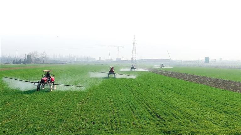 陕西日报:长安区杨庄街道营沟村开展春季麦田机械化作业