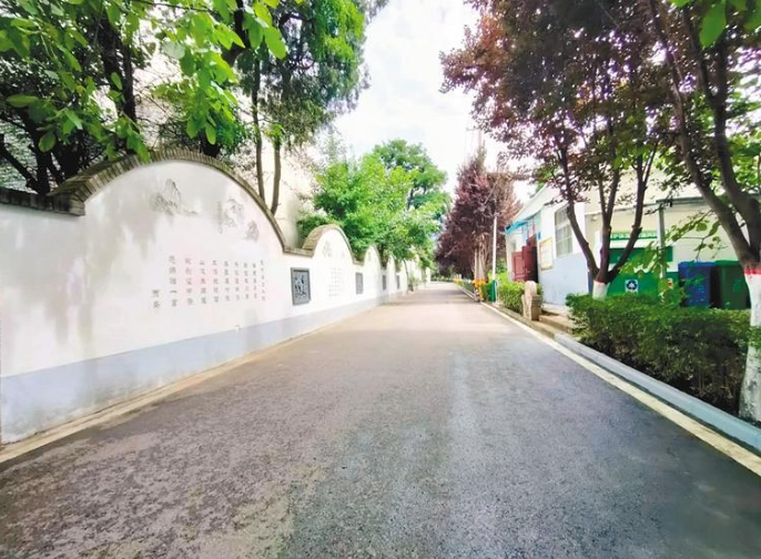 美丽乡村绿树成荫,道路整洁。