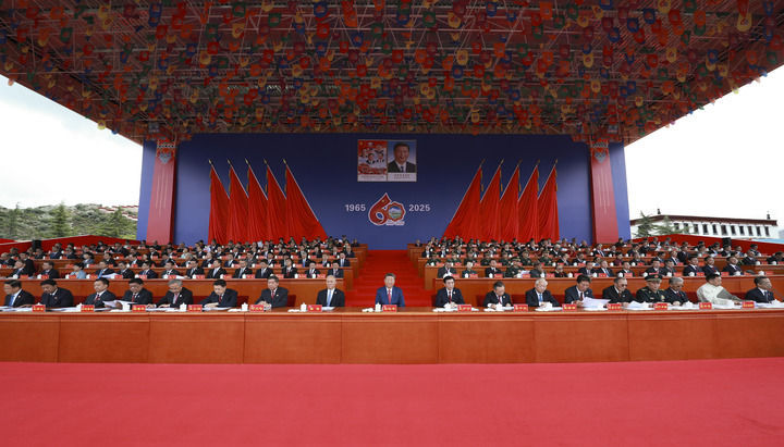 王沪宁发表讲话。他说,1965年9月,在党中央亲切关怀和党的民族政策光辉照耀下,西藏自治区宣告成立。这是西藏发展史上具有划时代意义的大事,巩固了西藏和平解放和民主改革的伟大成果,实现了西藏社会制度的历史性跨越。60年来,西藏经济社会全面发展,民族区域自治制度成功实践,民族团结日益巩固,各族人民生活蒸蒸日上,充分展现了中国共产党领导的坚强力量,充分展现了我国社会主义制度的显著政治优势。