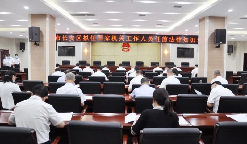6月7日下午,长安区人大常委会对29名拟任命国家机关工作人员进行任前法律知识考试。区人大常委会主任刘文涛,副主任黄鸿武、姚小强、葛莹到场巡考。