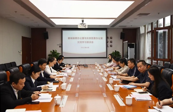 4月20日,河南省许昌市襄城县委办公室来长安区交流学习党委办公室机关建设和党建工作。