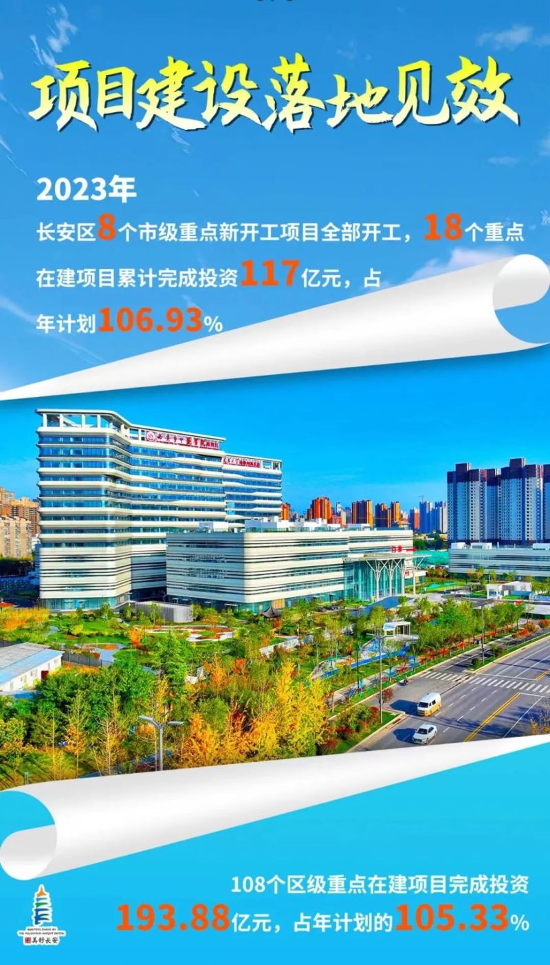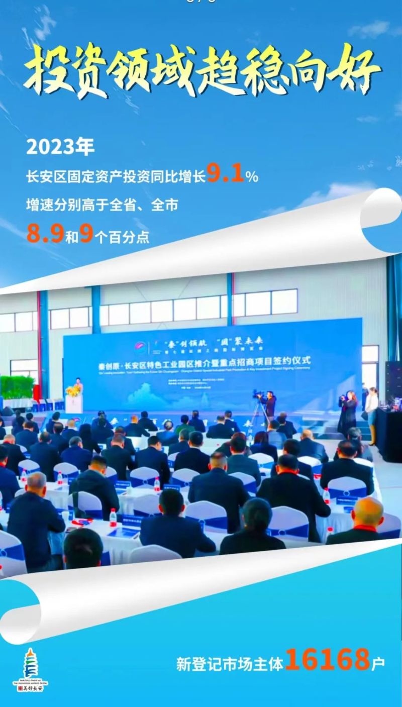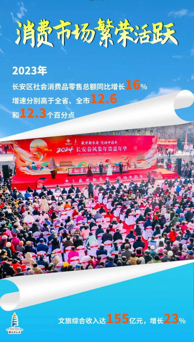 2023年,长安区抢抓机遇、竞进有为,扎实推进全省“三个年”活动和全市八个方面重点工作,按照区委“1168”总体工作思路,以稳经济促发展“组合拳”,打响“经济稳增长主动仗”,经济实现稳中向好、发展动能持续增强、功能品质有效提升,地区生产总值完成1455.17亿元,同比增长8%,在服务西安高质量发展中展现长安担当。