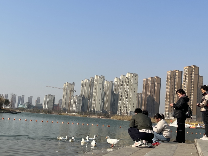 离开中央公园,记者又来到位于常宁新区的长安公园。置身于集自然河道、山地风景和水景景观于一体的长安公园中令人眼前一亮。宽阔的湖面在阳光的照射下,如同银色的丝带闪闪发光。湖边成片的白色芦苇荡,随风摇曳,成为冬日摄影师眼里的“宠儿”。不惧严寒的鸭子在水里畅游,时不时有市民投食,鸭子开心地在水里挥翅起舞……不由得让人感叹:好一幅冬日里的碧波生机图!
