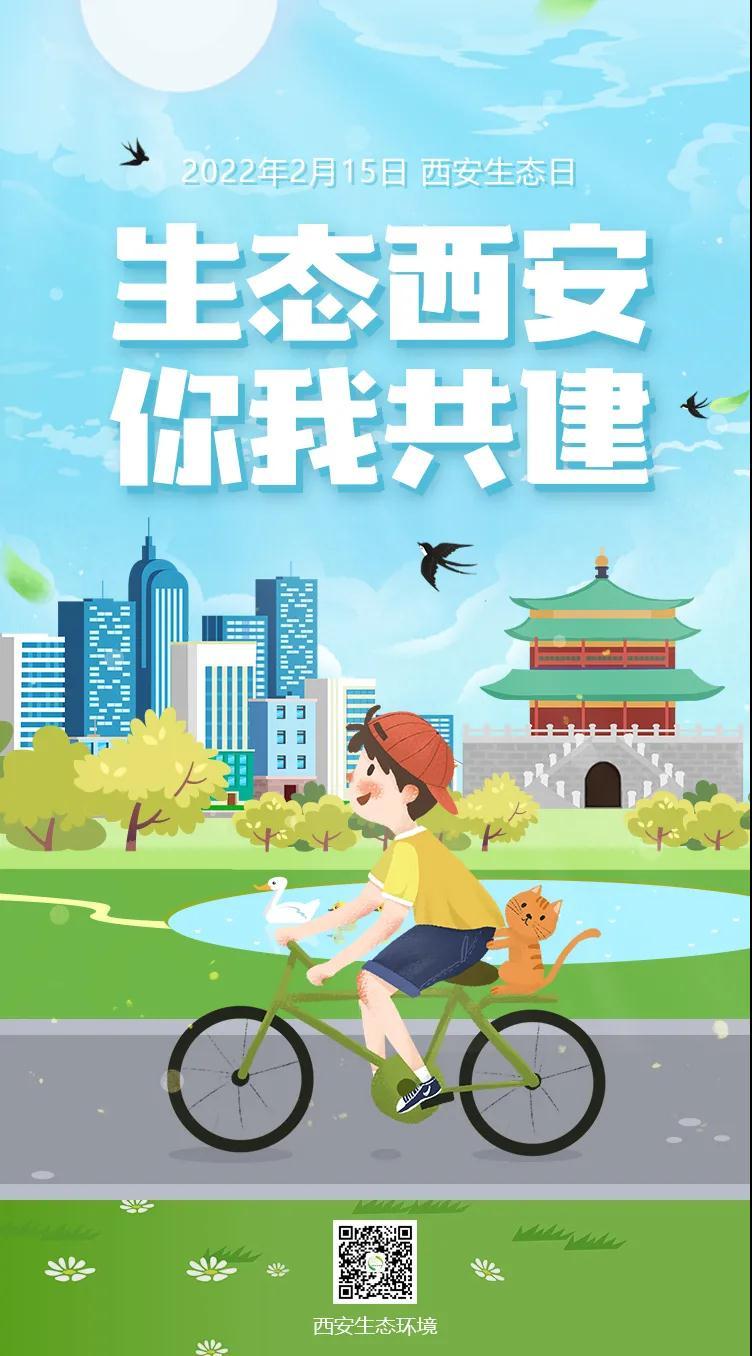 2022年2月15日是第四个“西安生态日”,2019年2月1日西安市十六届人大常委会第十九次会议,决定自2019年起将每年的2月15日设立为“西安生态日”,旨在动员全社会共同关心、支持、参与生态环境保护工作。