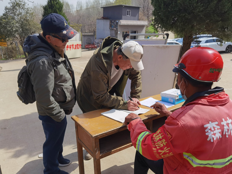 3月28日上午10时,记者来到土门峪,峪口广播正在循环播放着防火知识宣传,两名防火员在峪口入口处值守,详细登记进山游客身份信息,并对游客随身携带的火源进行暂存,防止任何火源进入山中。