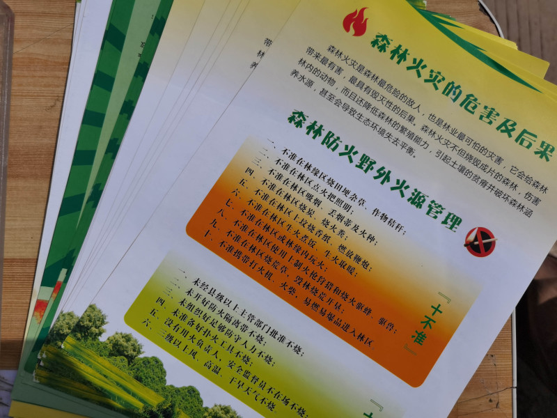 【现在这个季节,山上干柴干草比较多,最近我们也一直在巡逻,每天两趟。我们这里一共有三个峪口,每天上午10时到12时进行一次巡查,下午3时到5时半左右进行一次巡查。巡查中,我们主要给群众主要宣传一下文明祭祀和防火知识。】