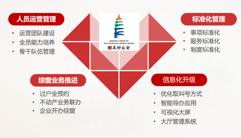 由硬件叫号升级为智能取叫号系统,支持大厅事项全预约。取叫号流程简便,系统易于使用,较传统硬件取叫号系统整体效率提升40%。“智能导办系统”全面应用,“傻瓜式”操作,“敞口式”查询服务,口语化事项检索,群众办事“一点”就懂。“服务数据可视化”系统上线以来,群众平均等待时长缩短了15分钟,窗口业务办理时长平均缩短了10分钟,单日平均办件量增加了200多件,企业群众满意度进一步提高。