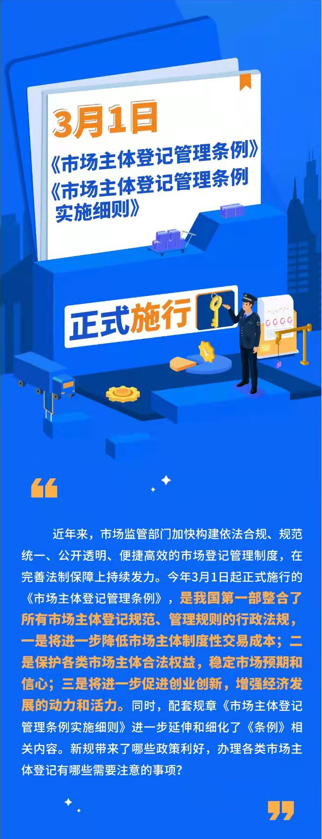 3月1日,《市场主体登记管理条例》及《实施细则》正式施行