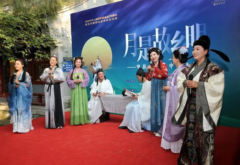 9月16日,为丰富人民群众的精神文化生活,长安区委宣传部、区直属机关工委、区文联 、区文旅体局在杜甫纪念馆(杜公祠)联合举办“月是故乡明——甲辰•长安中秋诗会”,通过诗歌朗诵、民乐演奏、歌舞表演等多种文艺形式,为市民们呈现了一场诗意中秋与家国情怀并举的文化盛宴。