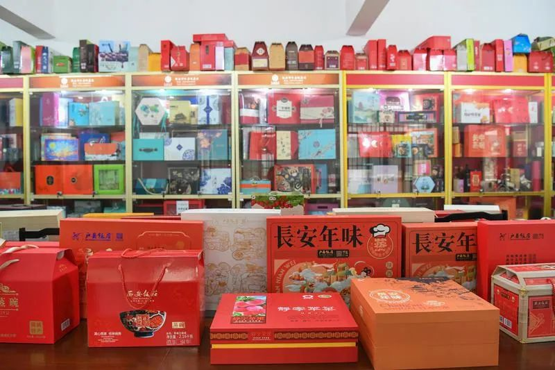 11月25日,位于长安区五台街道东甘村的长安区纸盒厂,一楼车间的机器正在运转,工人们熟练地贴花、组装。展厅里,上千个纸盒包装分门别类,有高端精致的礼盒包装,也有集美观与实用性于一体的文创产品。