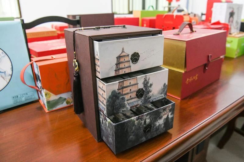 为了把纸盒厂做出规模,王强自学设计,积极带动周边村民增收。一个月饼盒,上面有立体浮雕大雁塔、明亮的圆月,打开每个小盒子都像是拉开抽屉……这款月饼盒的设计中,便融合了王强的精巧构思。打开简约的纸盒,一本《创业史》、一支钢笔、书签等,这个简约的纸盒成就了一件代表长安区文化特色的文创伴手礼。