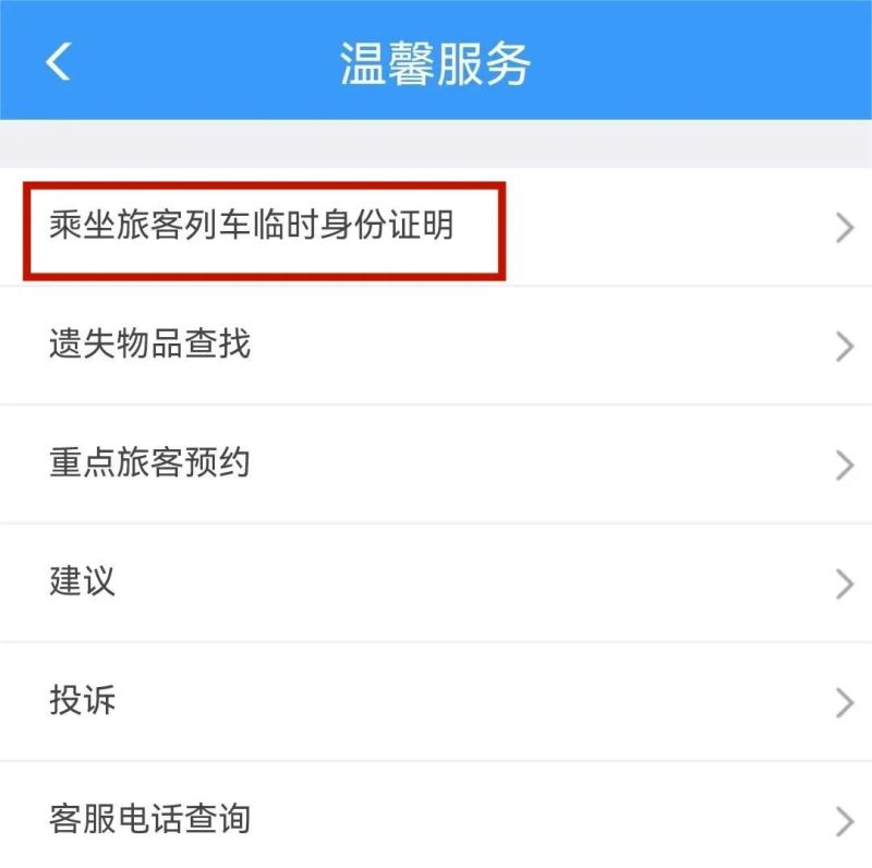 打开“铁路12306”APP首页,点击“温馨服务”,选择“临时身份证明”,按提示填写个人真实信息,进行人脸识别。审核通过后,即可凭相关票证顺利进站。