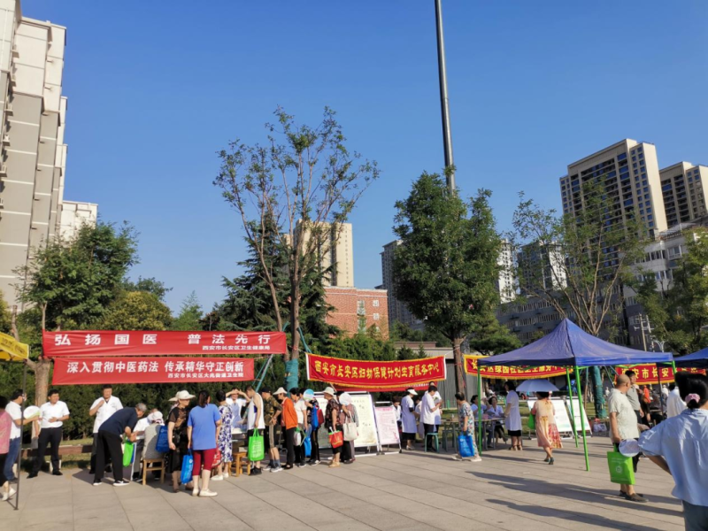 为庆祝《中华人民共和国中医药法》实施六周年,增强广大群众对中医药法和中医药健康知识的关注和了解。6月30日上午,长安区卫生健康局组织区医院、区中医医院、区妇计中心、西安工会医院、聂河中医医院等10家医疗机构在长安中央公园开展“弘扬国医,普法先行--《中华人民共和国中医药法》实施六周年宣传活动”。