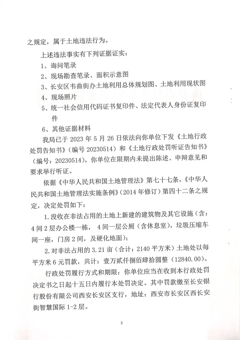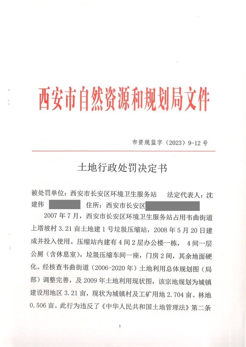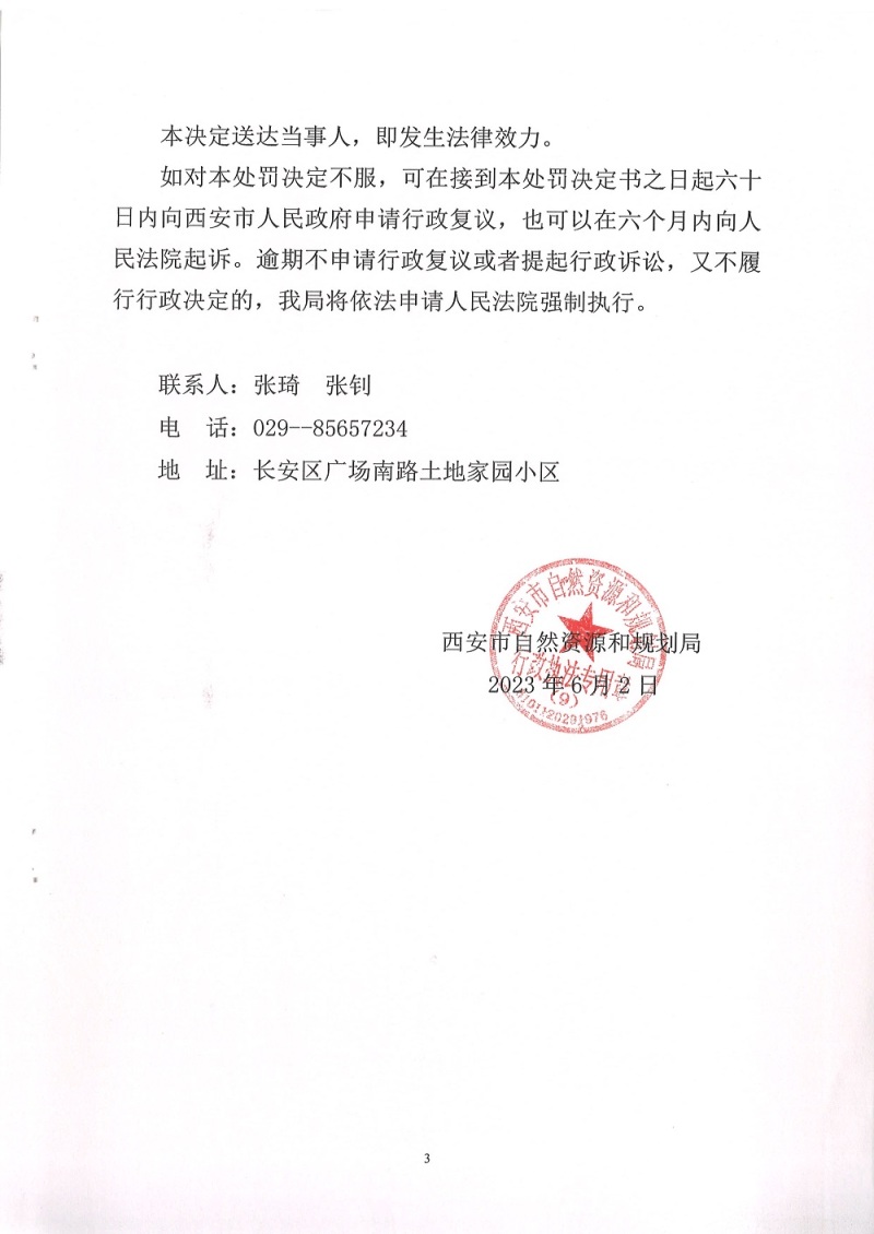 西安市自然资源和规划局长安分局行政处罚决定书(市资规监字【2023】9-12号)公示