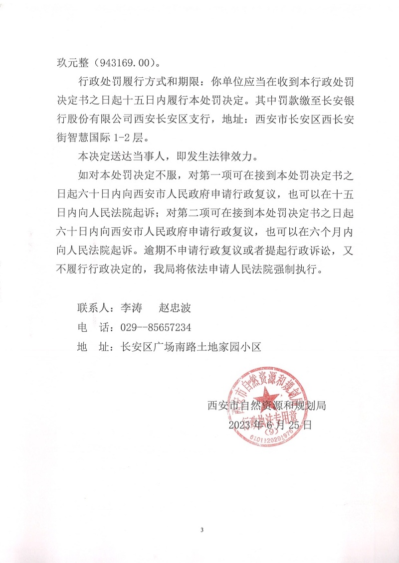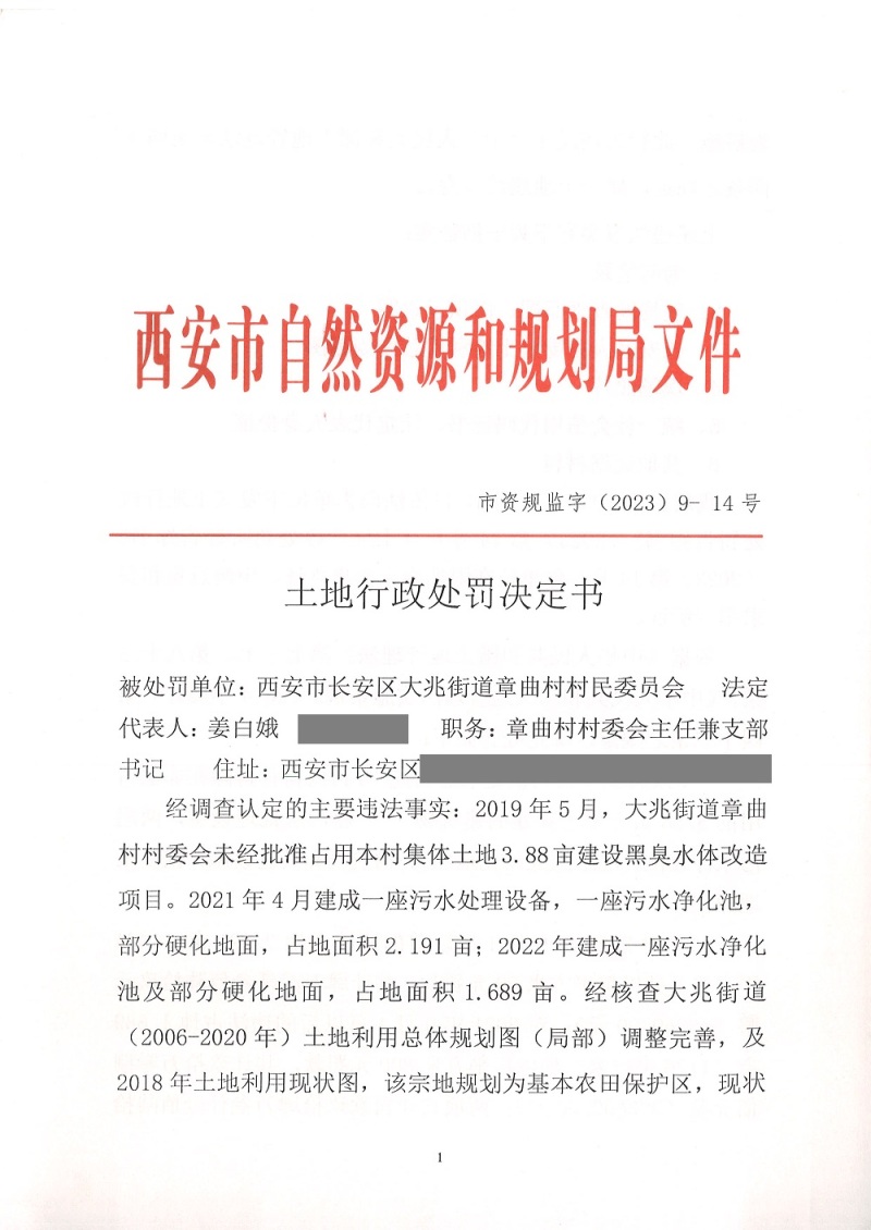 西安市自然资源和规划局长安分局行政处罚决定书(市资规监字【2023】9-14号)公示