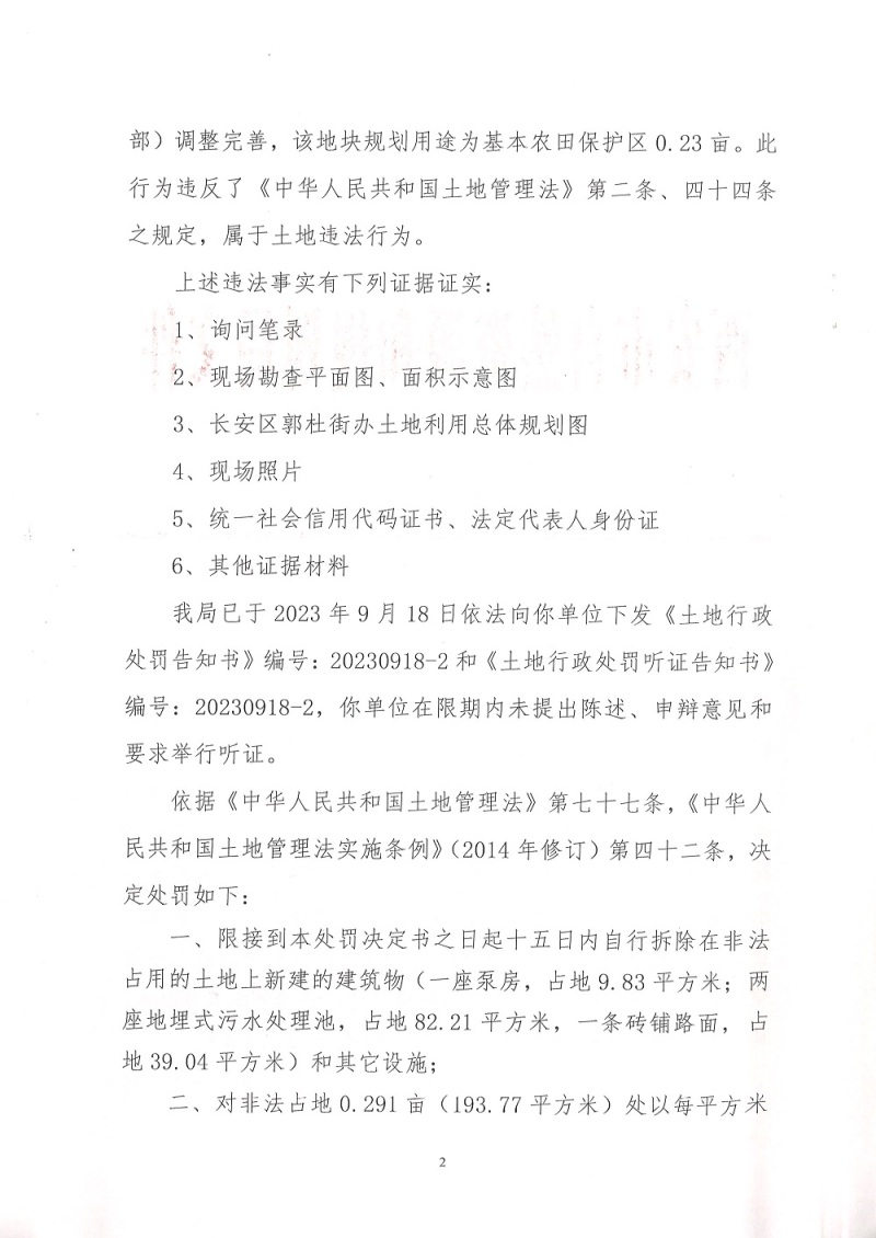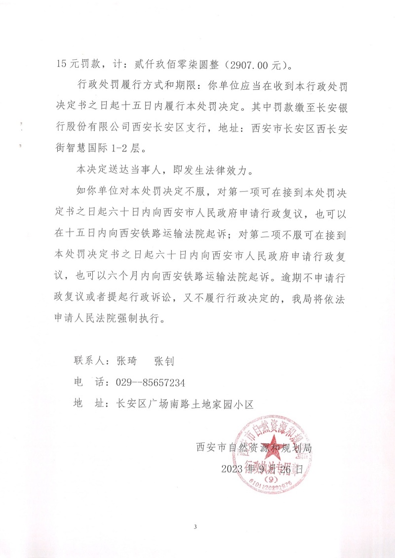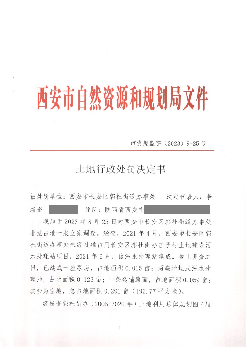 西安市自然资源和规划局长安分局行政处罚决定书(市资规监字【2023】9-25号)公示