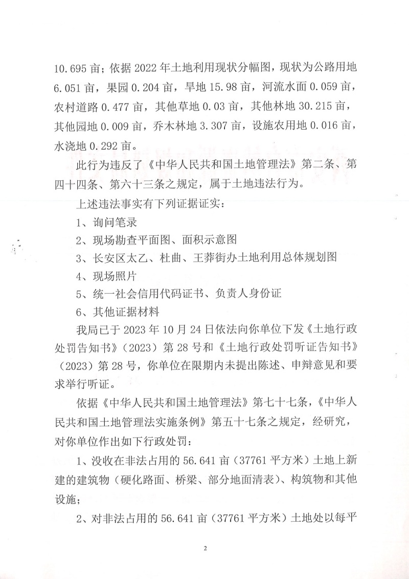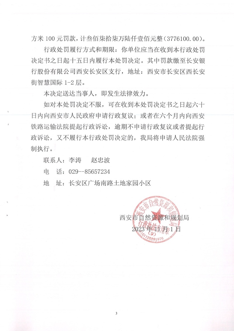 西安市自然资源和规划局长安分局行政处罚决定书(市资规监字【2023】9-28号)公示