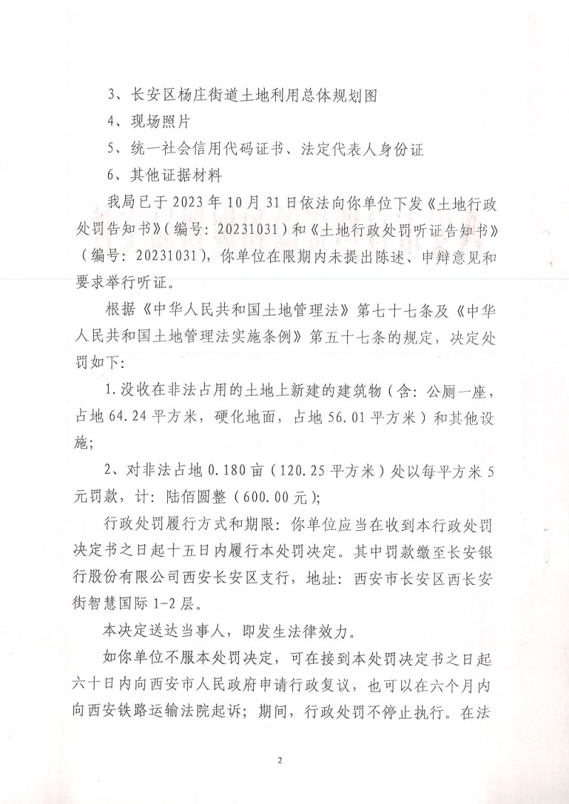 西安市自然资源和规划局长安分局行政处罚决定书(市资规监字【2023】9-32号)公示