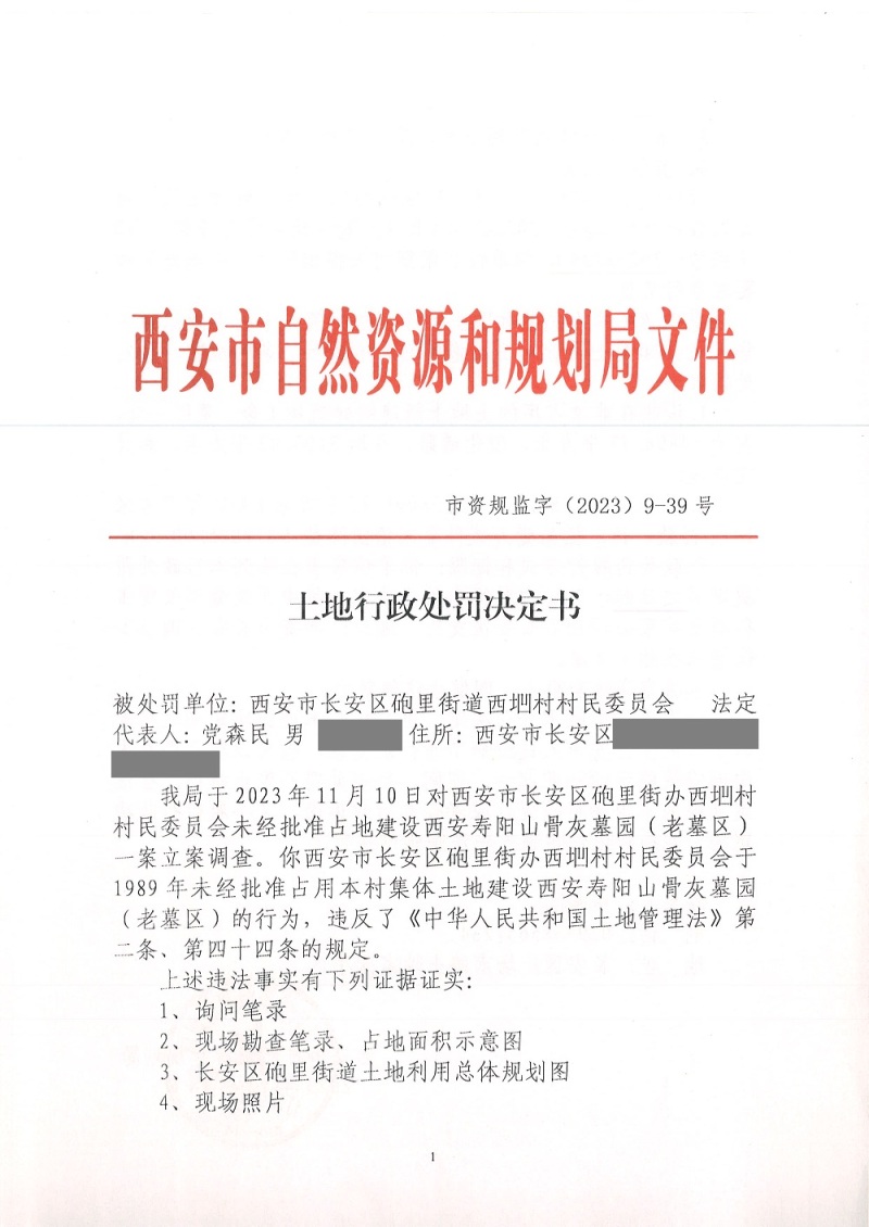 西安市自然资源和规划局长安分局行政处罚决定书(市资规监字【2023】9-39号)公示