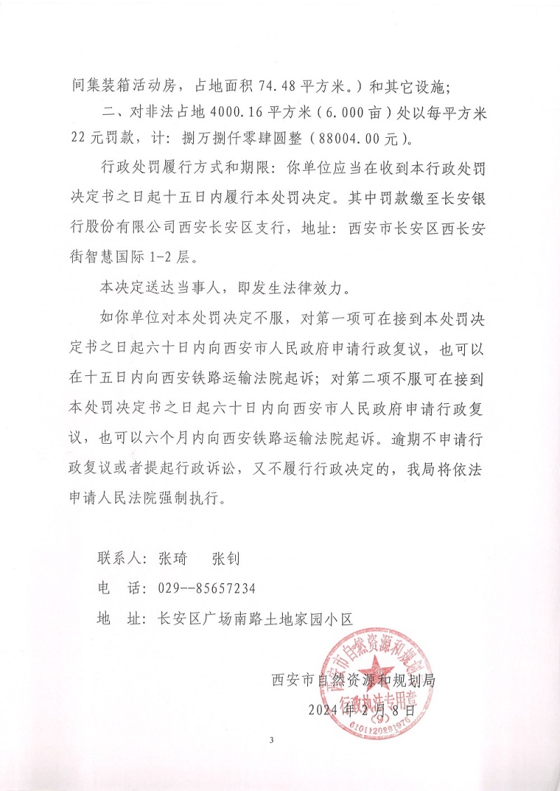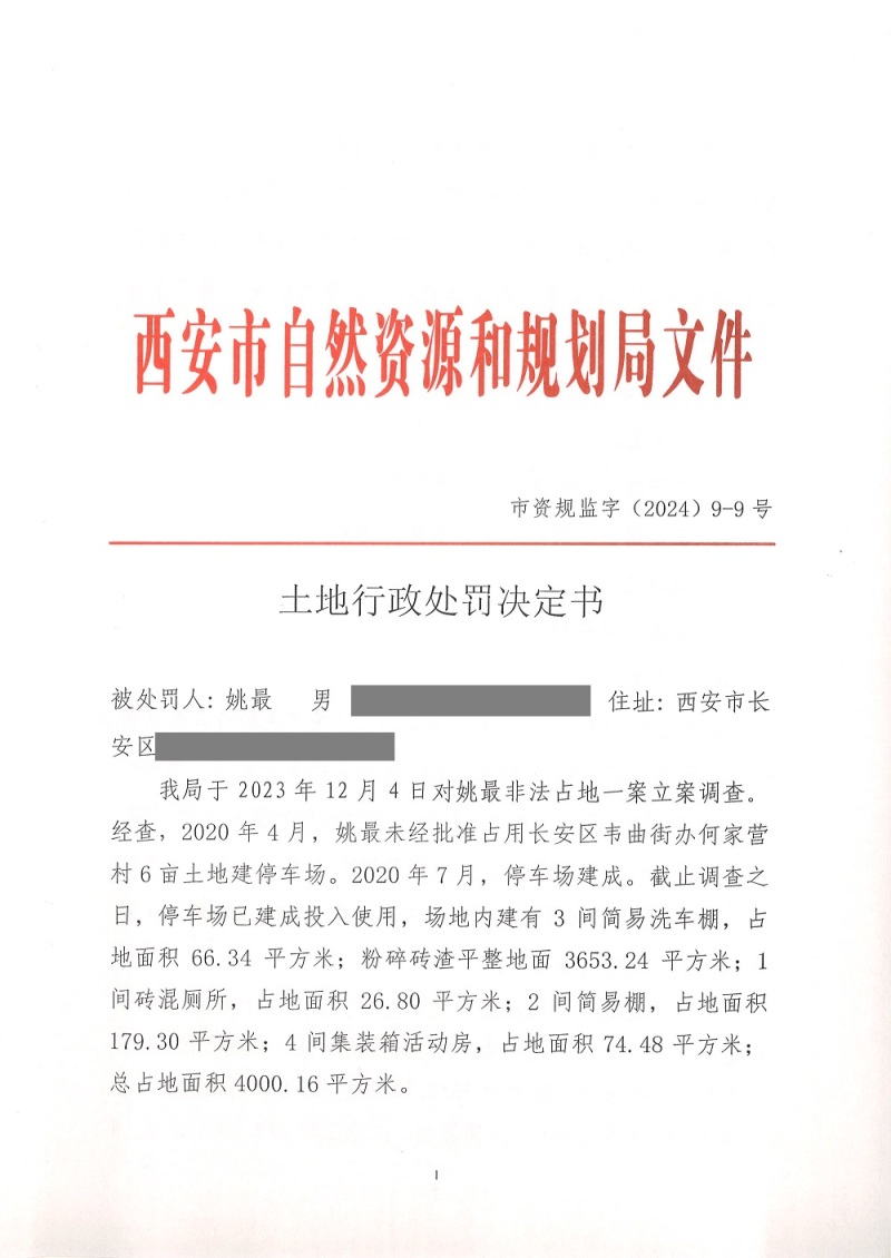 西安市自然资源和规划局长安分局行政处罚决定书(市资规监字【2024】9-9号)公示