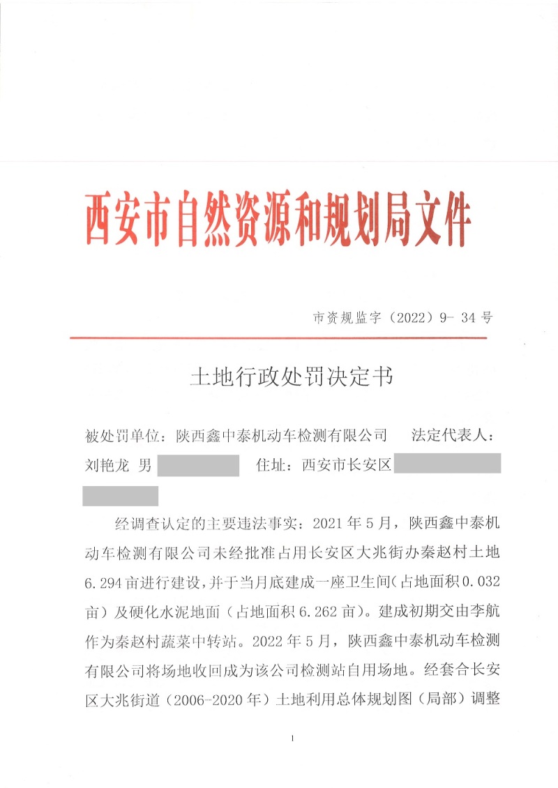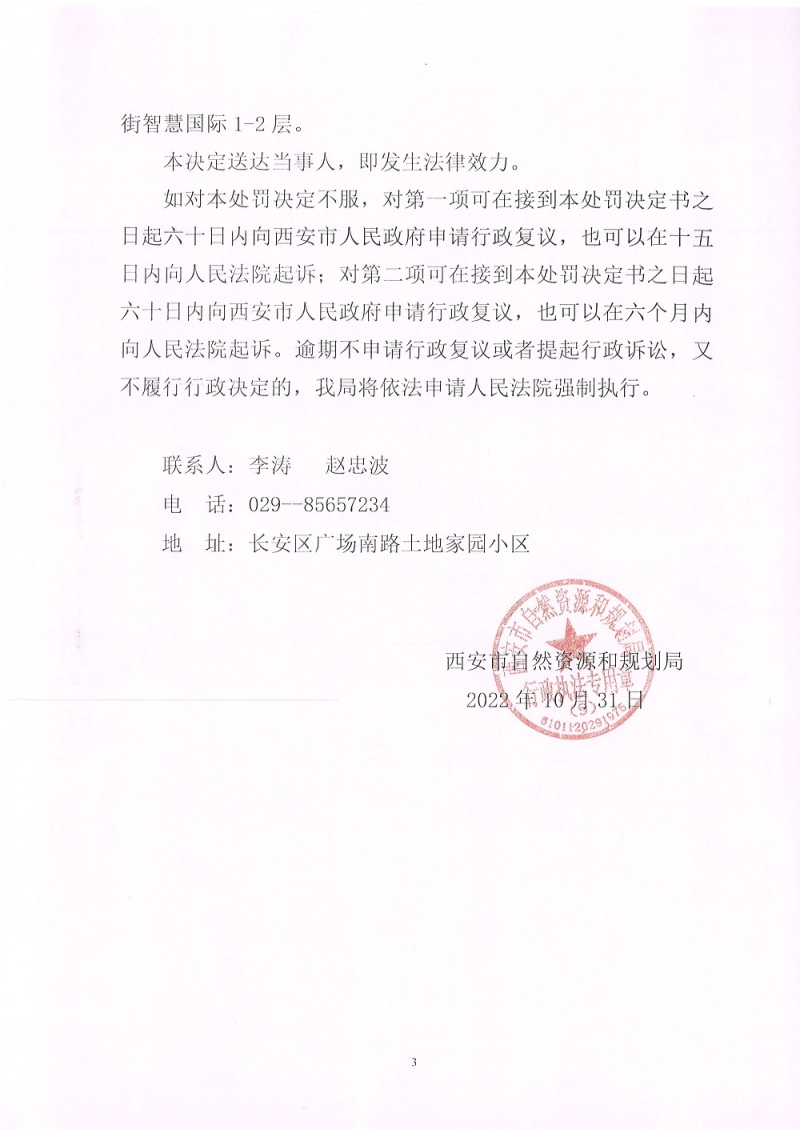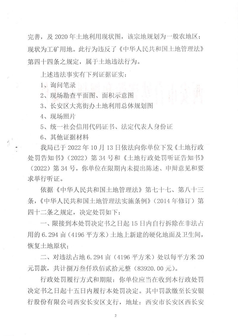 西安市自然资源和规划局长安分局行政处罚决定书(市资规监字【2022】9-34号)公示