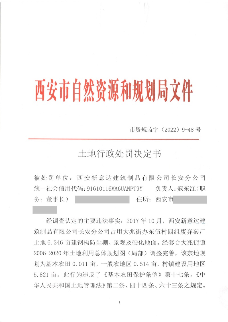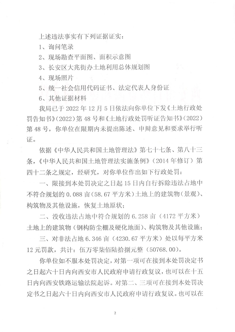 西安市自然资源和规划局长安分局行政处罚决定书(市资规监字【2022】9-48号)公示