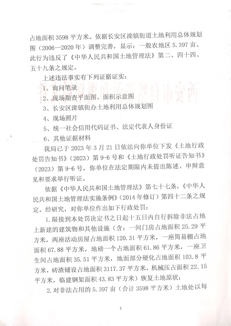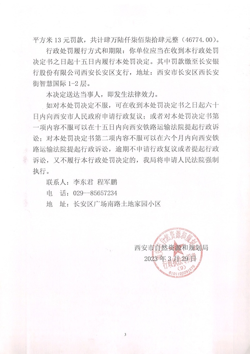 西安市自然资源和规划局长安分局行政处罚决定书(市资规监字【2023】9-6号)公示