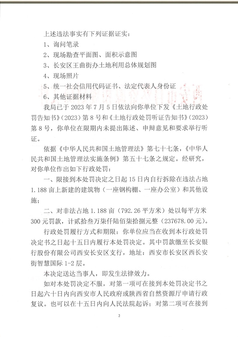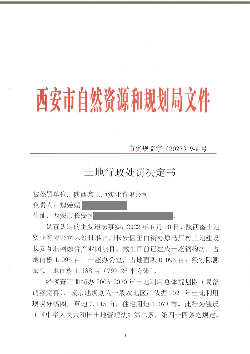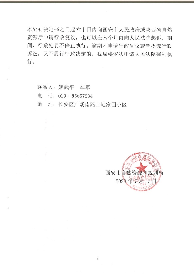 西安市自然资源和规划局长安分局行政处罚决定书(市资规监字【2023】9-8号)公示