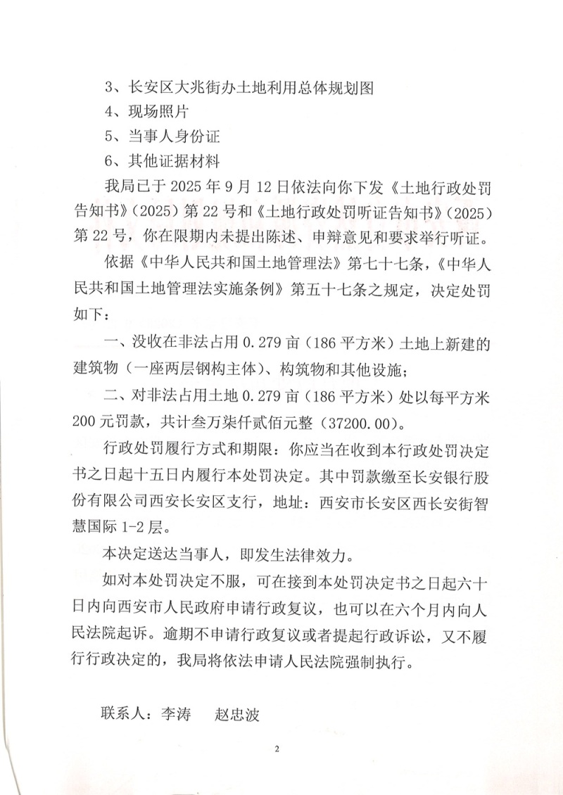 西安市自然资源和规划局长安分局行政处罚决定书(市资规监字【2025】9-22号)公示