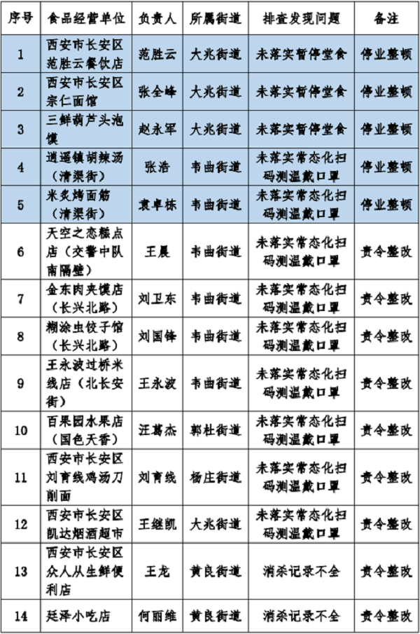 西安市长安区市场监督管理局关于对落实疫情防控措施不到位的食品经营单位的通报