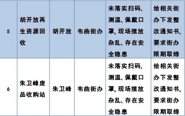为做好商贸领域疫情防控工作,按照西安市长安区疫情防控指挥部要求,西安市长安区投资合作和商务局严格督促各商贸企业落实疫情防控各项措施,2022年11月7-10日,对辖区商贸企业疫情防控落实情况继续进行全面排查,发现6家企业未严格落实各项疫情防控措施,现予以全区通报: