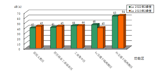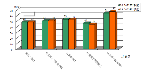2023年二季度功能区噪声昼间监测点次达标率为100%,夜间监测点次达标率为95%。