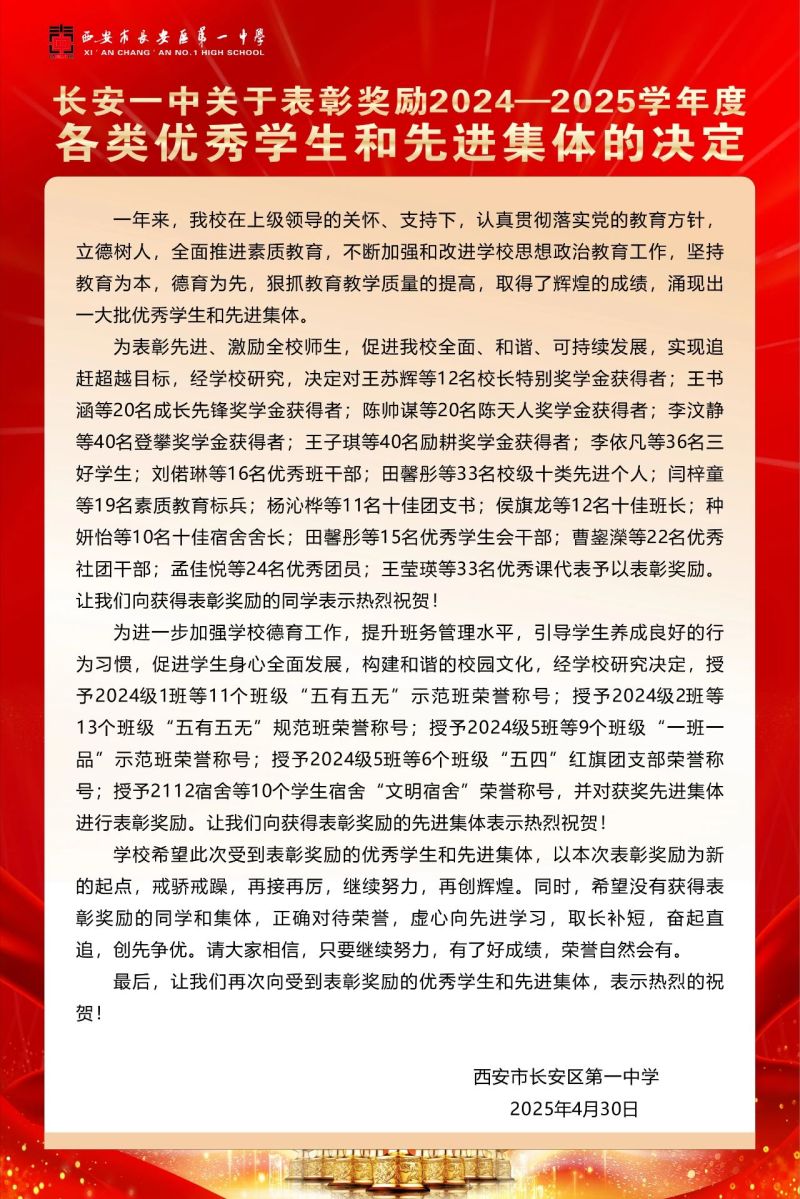 金榜高悬姓字真,分明折得一枝春。王有成书记宣读了学校的表彰决定,学校希望受到表彰奖励的优秀学生和先进集体,以本次表彰奖励为新起点,戒骄戒躁、再创佳绩;希望全体同学以先进为榜样,勤奋学习、踏阶登攀,努力成为“有理想信念、有责任担当、有登攀精神、有感恩意识、有文明行为”的时代新人。