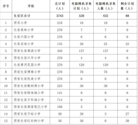 现将西安市长安区2023年民办小学电脑随机录取人数和剩余计划数公布如下: