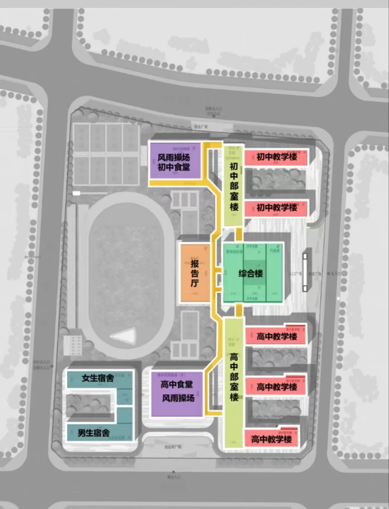 (以上两图为长安一中新建校区概念设计方案示意图,非审定版)