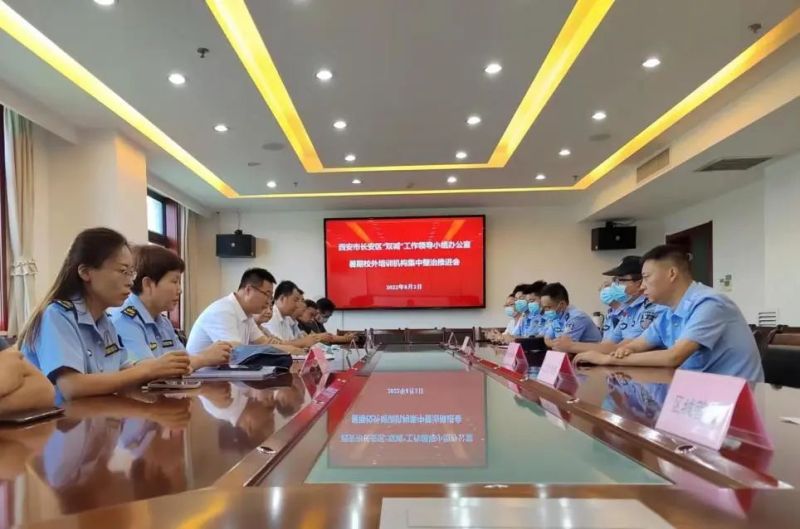 8月2日上午,长安区“双减”办组织教育、文旅、市场监管、住建、公安、城管等部门和郭杜街办,成立“监管护苗”行动联合检查组,再次召开会议,研究校外培训机构治理工作,安排落实“监管护苗”专项行动。会后,检查组立即奔赴郭杜辖区,开展“监管护苗”专项治理。