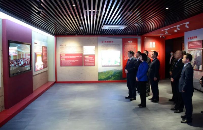 在大教训警示教育基地(滦镇街道上王村),吕强带领班子成员,逐一参观了国之大者、中华祖脉、秦岭之殇、雷霆行动、深刻教训、生态治理、守护秦岭7个展厅。一份份文件资料、一张张拆违图片、一段段整治视频,真实记录着长安秦岭违建整治工作的全过程。在守护秦岭展厅,吕强带领区委常委会班子成员整齐列队,高举右拳,面对鲜红党旗,重温入党誓词,在吕强领誓下,铿锵有力的宣誓声响彻大厅,表达了新一届区委班子为党的事业奋斗终身、当好秦岭生态卫士的坚定决心。