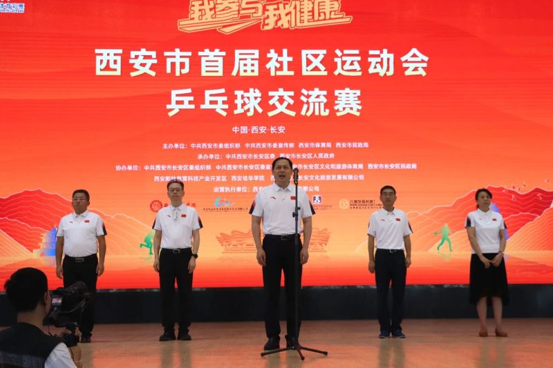 吕强宣布西安市首届社区运动会乒乓球交流赛正式开赛