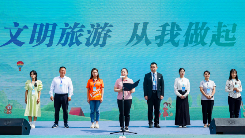 现场,来自文明旅游单位倡议人代表向广大市民游客发出文明旅游倡议书,倡导绿色出行、文明旅游,传播中华文化自信。《山河诗长安》场景化诗朗诵中的诗篇美句,与生态美景交织辉映,展现出古老西安的深厚文化底蕴与诗意韵味,“千年古都 西安有礼”展销则集中展示了