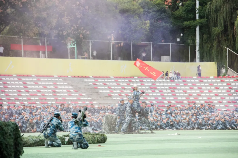 在军训汇报表演中,数千名受训新生依次进行了分列式、匕首操、队列、军体拳、战伤救护、战术表演等军事科目汇演,圆满完成了汇演任务,展示了训练成果。接受检阅的全体新生斗志昂扬,英姿勃发,充分展现了当代大学生的蓬勃朝气和西译学子的精神风貌。